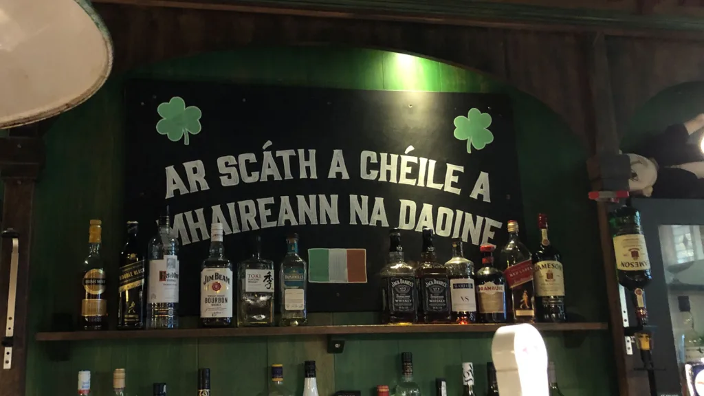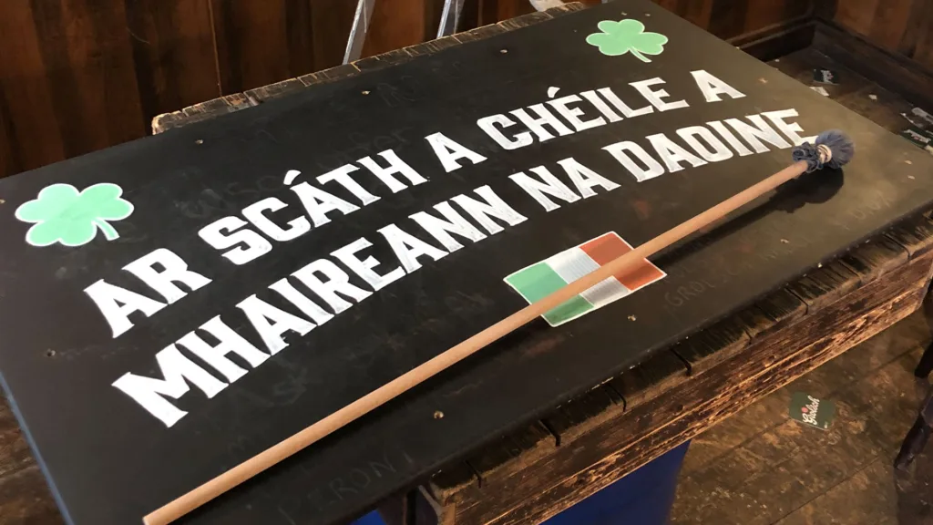 En voor de quote op het bord achter de bar ben ik te werk gegaan vanuit het signpainters perspectief. Dikke letters, mooi gestileerd met Ierse elementen en een sterke aanwezigheid achter de bar.